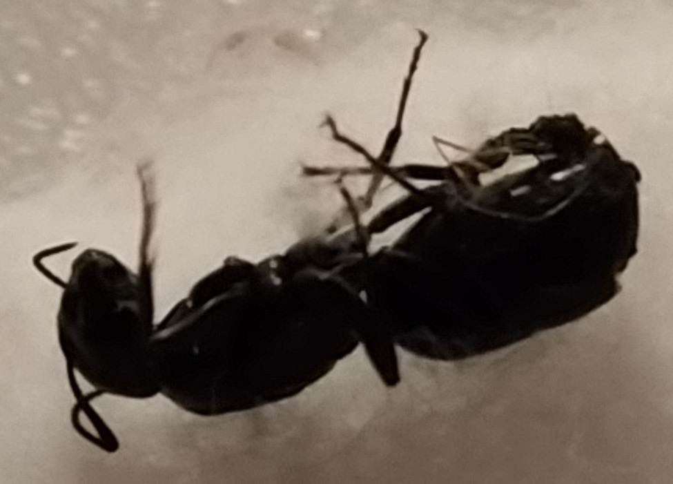 la formica non poteva muoversi perchè solo le 2 zampe anteriori erano agibili, le arte incollate al cotone