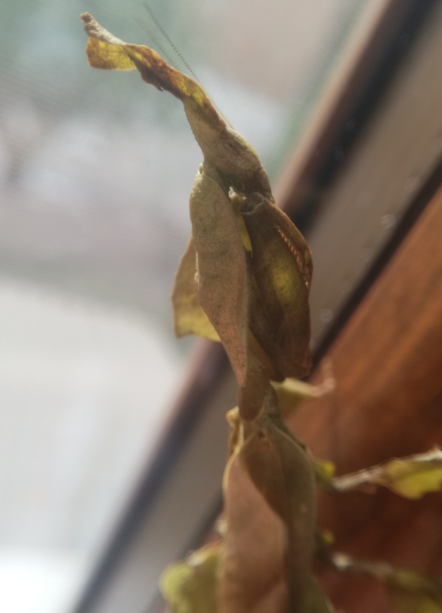 Qui una foto della splendida mantide fantasma che ammira il tramonto del solstizio d'estate! (o la mosca sulla zanzariera?