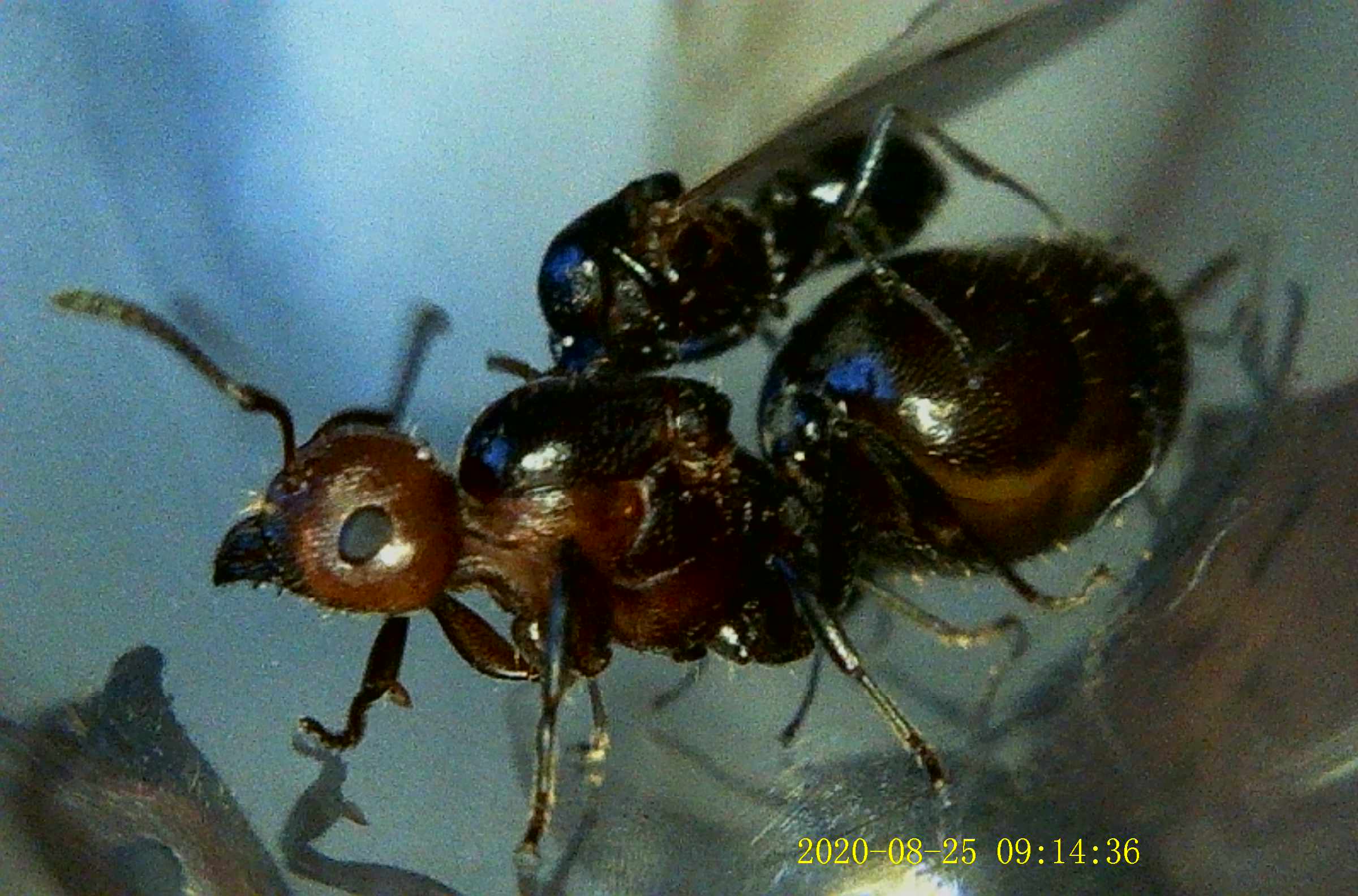 Ho trovato questa regina la mattina presto insieme ad un paio di maschi. Dopo qualche ora in provetta con i maschi la ho trovata dealata. Misura poco meno di 1 cm.