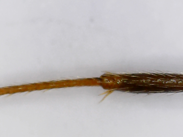 Una particolarità che si riesce ad apprezzare sono le zampe bicromatiche, la parte prossimale al torace è nera, mentre quella medio-distale fino all'artiglio del tarso è giallino.