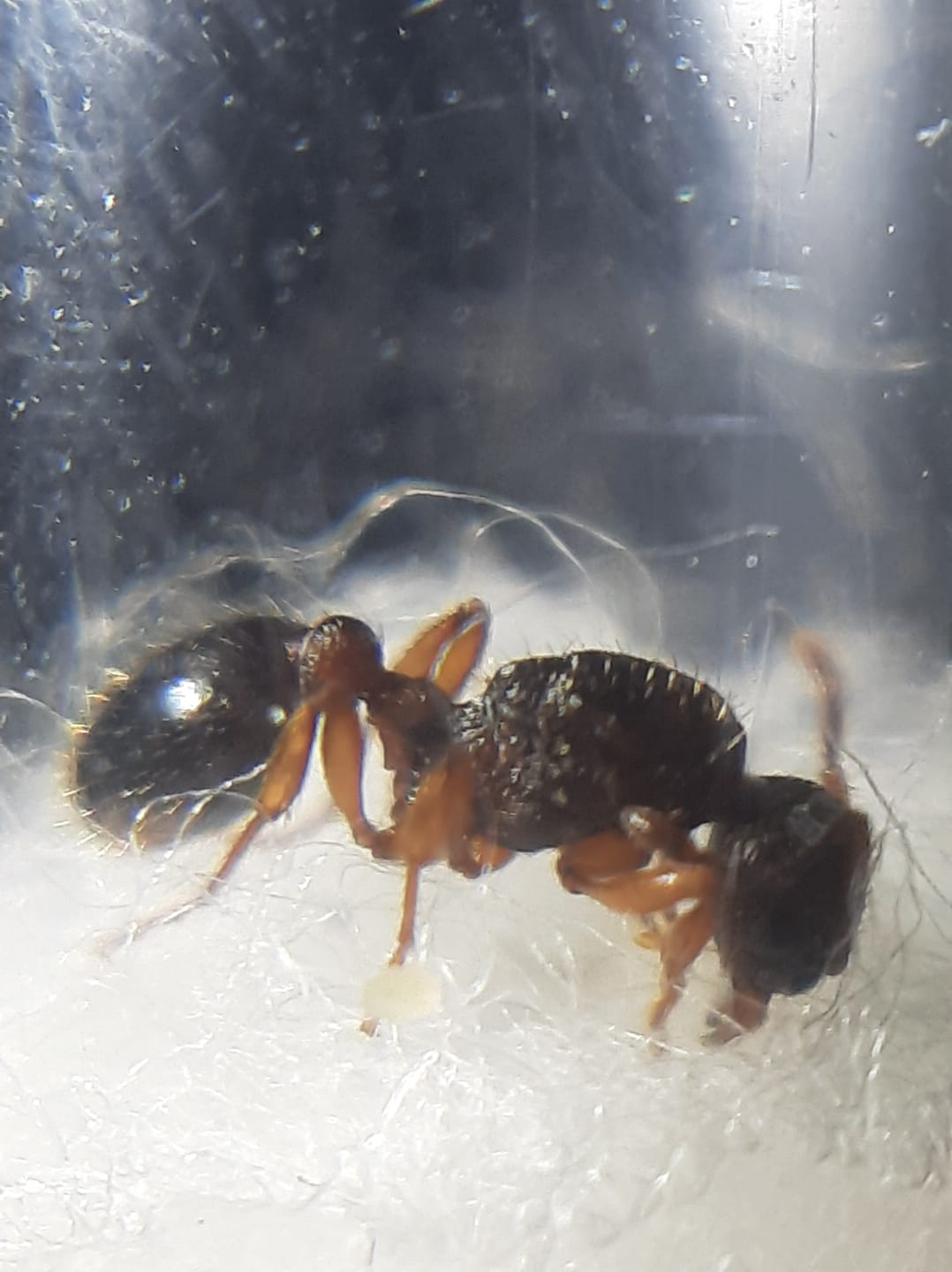 Notando l'interesse, mi e' d'obbligo dare notizie su queste misteriose regine. Essendomi stato detto essere Myrmica, e avendone 2, ho deciso di provare a farle fondare insieme, essendo che da sole non davano molti risultati. Appena unite, non hanno dato nessun segno di paura, solo un continuo "annusarsi". Dopo 2 giorni sono spuntate le prime uova ed ecco qui: un bel gruzzoletto!