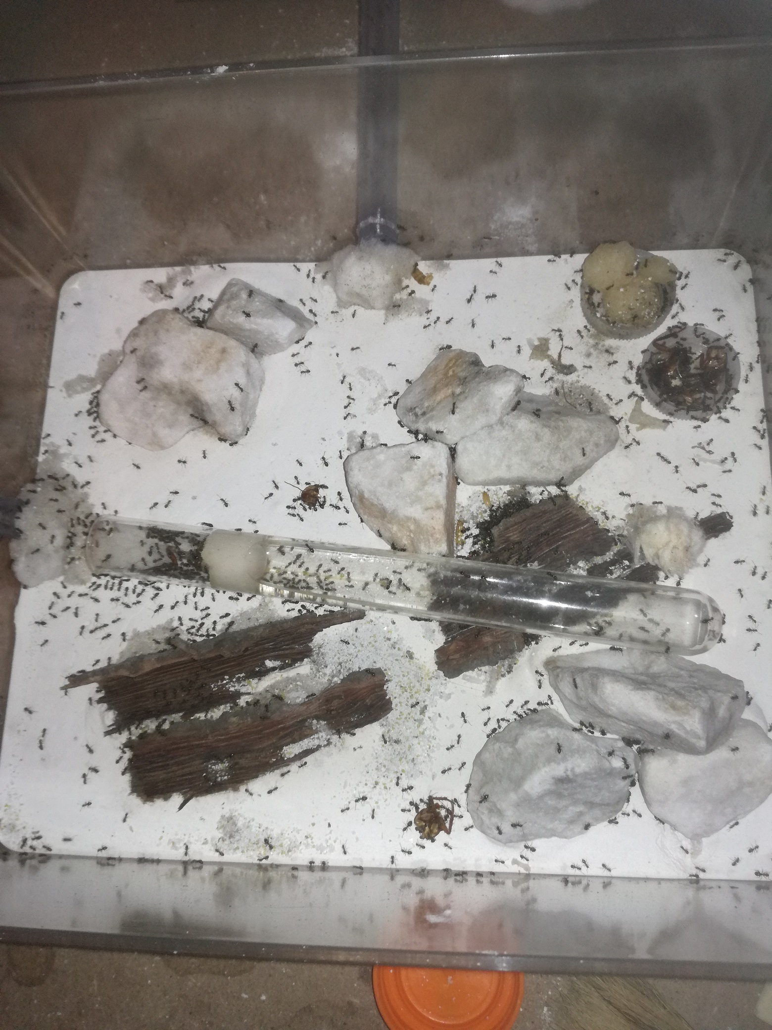 La primavera 2019 è ormai arrivata e la colonia si è del tutto svegliata dall'ibernazione, le formiche sono attive e fameliche e divorano enormi quantità di proteine (qualcosa come 15 camole e 5 o 6 blatte adulte ogni 2 giorni). Vista la grande esuberanza con cui sembrano essere partite, nella giornata di ieri 21 Marzo ho deciso di iniziare il trasferimento nel nuovo nido, a trasferimento ultimato pubblicherò altre foto del nuovo nido e della relativa arena.