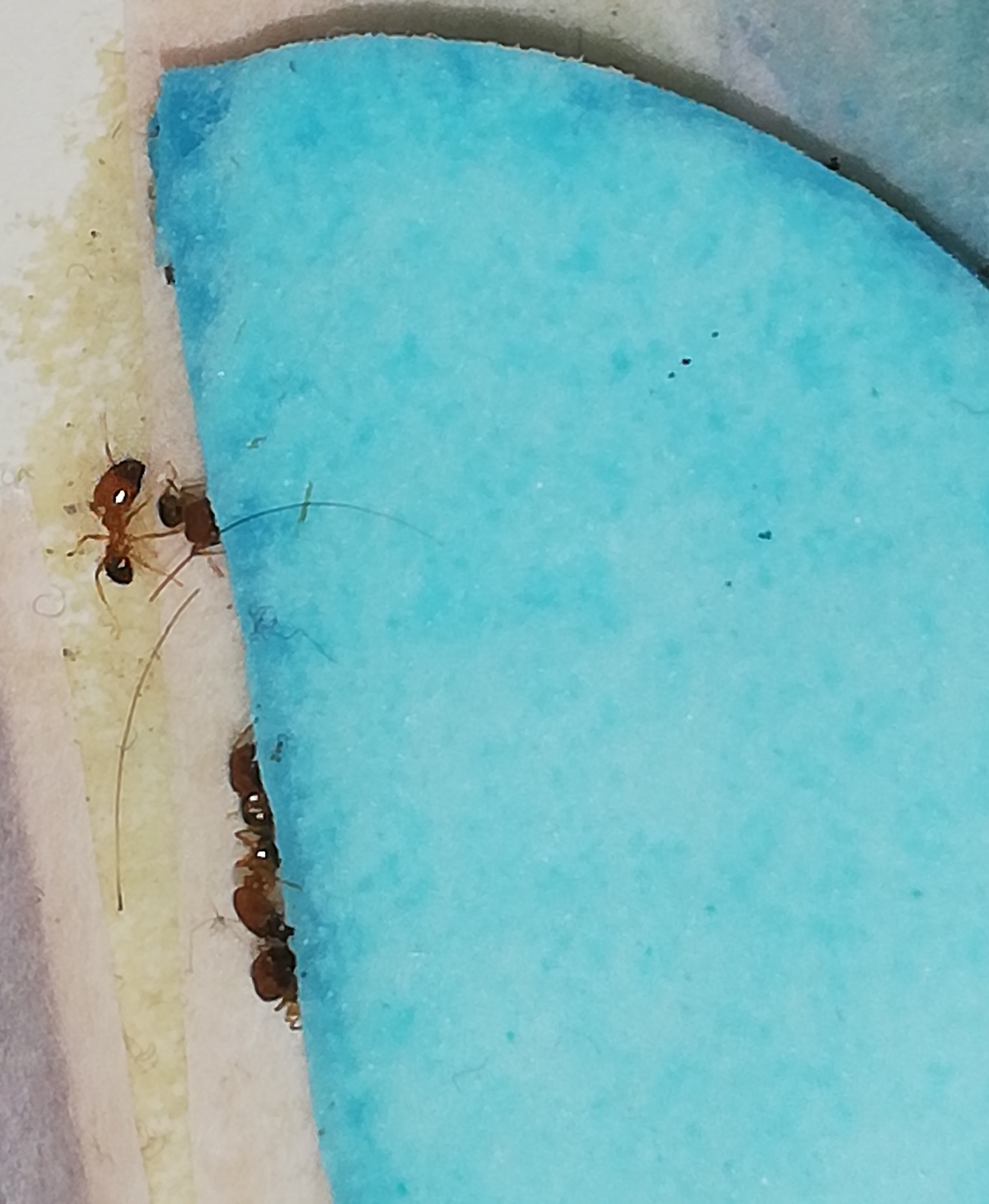 In aggiunta volevo dire che le dimensioni sono circa di 3,7mm per le più grandi e 2,5mm circa per le piccole non le ho misurate fisicamente ma ho preso la misura reale del tappetino celeste e ho visto a quanto corrispondeva nella foto tramite un tool e ho trovato la proporzione da lì sempre tramite lo stesso tool ho visto la lunghezza delle formiche e ho trovato la lunghezza reale in proporzione al tappetino. Ovviamente sono consapevole che non è precisa ma solo per avere un idea. Grazie mille