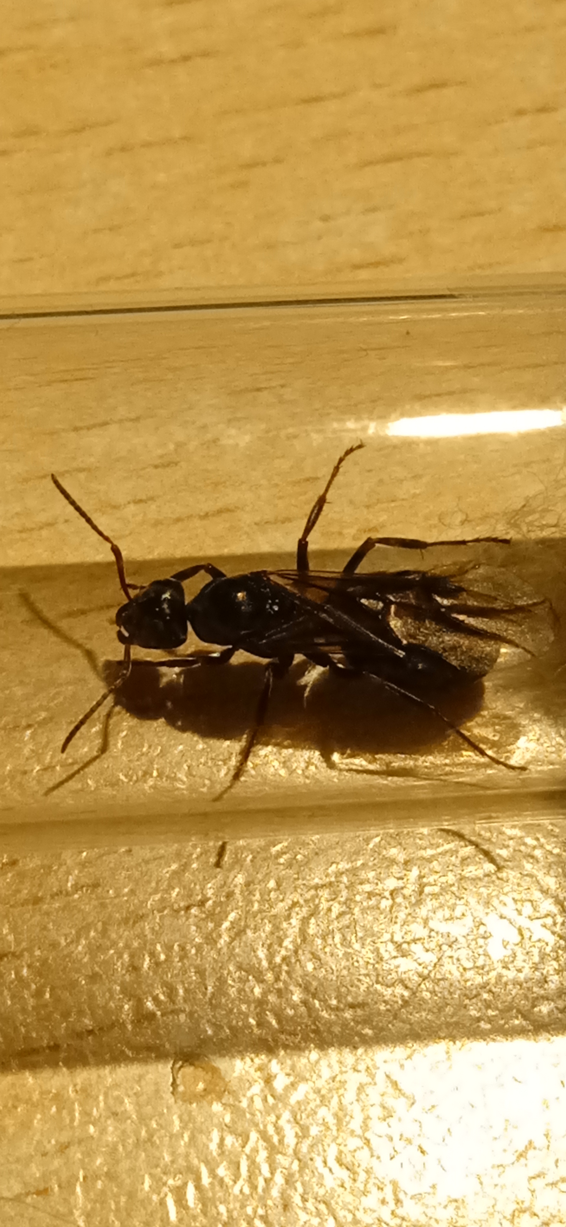Ciao a tutti! chiedo per la seconda volta un'identificazione per una regina trovata la sera del 29/06/23 in un luogo vicino Perugia. La regina è lunga circa 1 cm, è nera lucente e non ha peli. Ecco a voi alcune foto per aiutarmi meglio sull'identificazione: