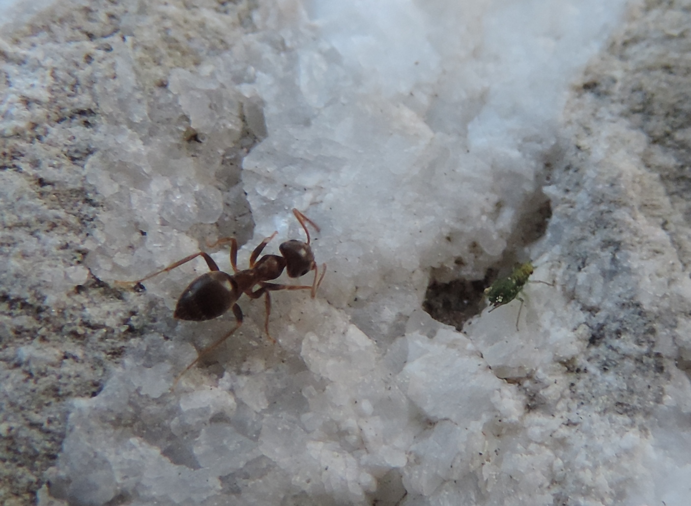 Fotografato a Salbertrand (TO) a circa 1000 metri di quota, il 21 maggio 2022, si tratta di una Lasius? Mentre la seguivo ha predato un malcapitato afide.
