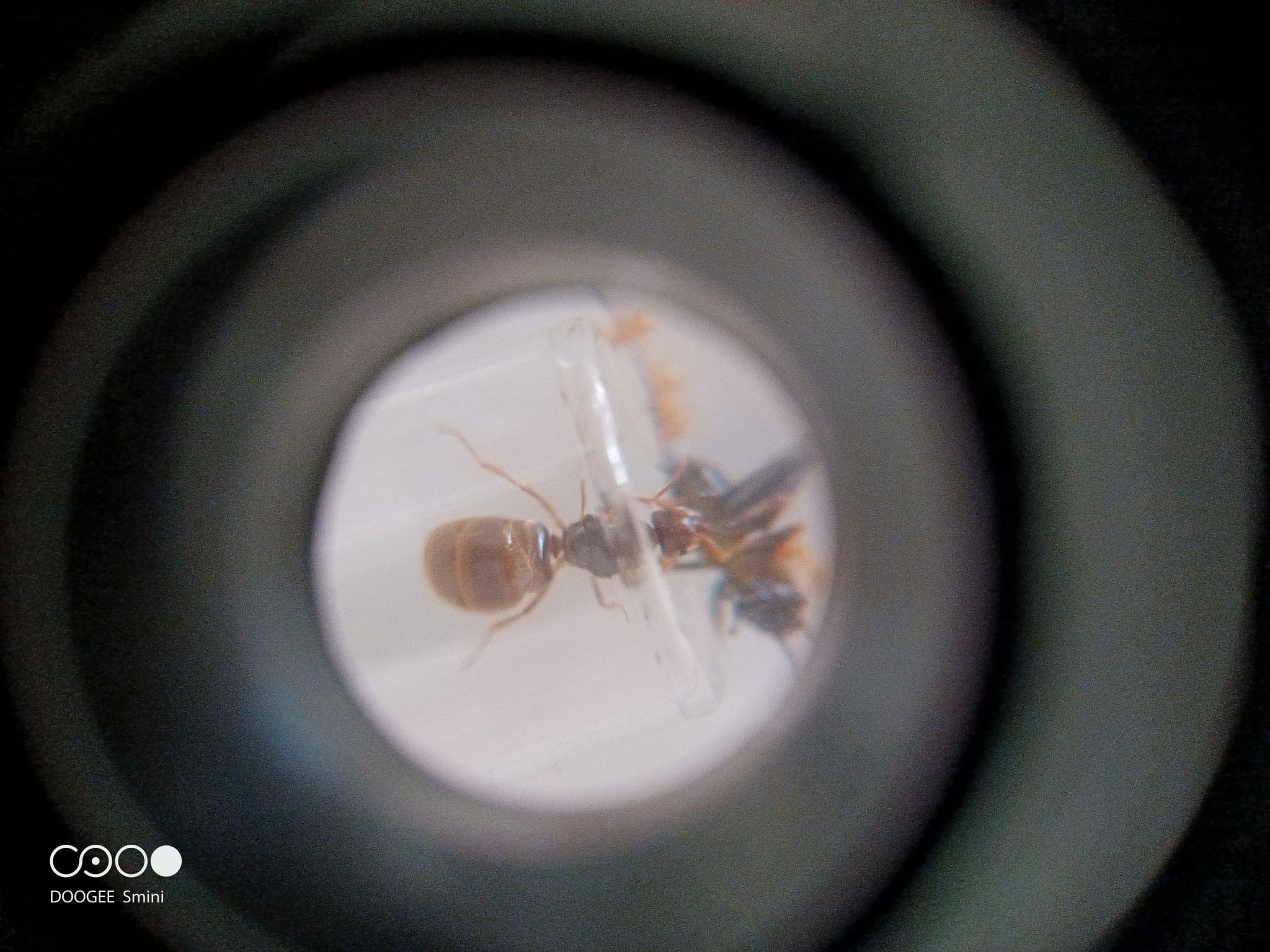 Stasera ho fornito una zanzara alla mia "problematica" regina di Lasius sp, ma è successo qualcosa di particolare. Non è la prima volta che le fornisco un insettino, poco prima della scorsa settimana ha svuotato una zanzara. Ecco, è molto "timida" come regina, quando tolgo o introduco oggetti in provetta si piazza sulla prole il più vicino possibile al cotone, cercando di nascondersi, come immagino sia razionale. Stasera, quando ho introdotto una zanzara in provetta, invece di scappare la ha toccata con le antenne e la ha attaccata!