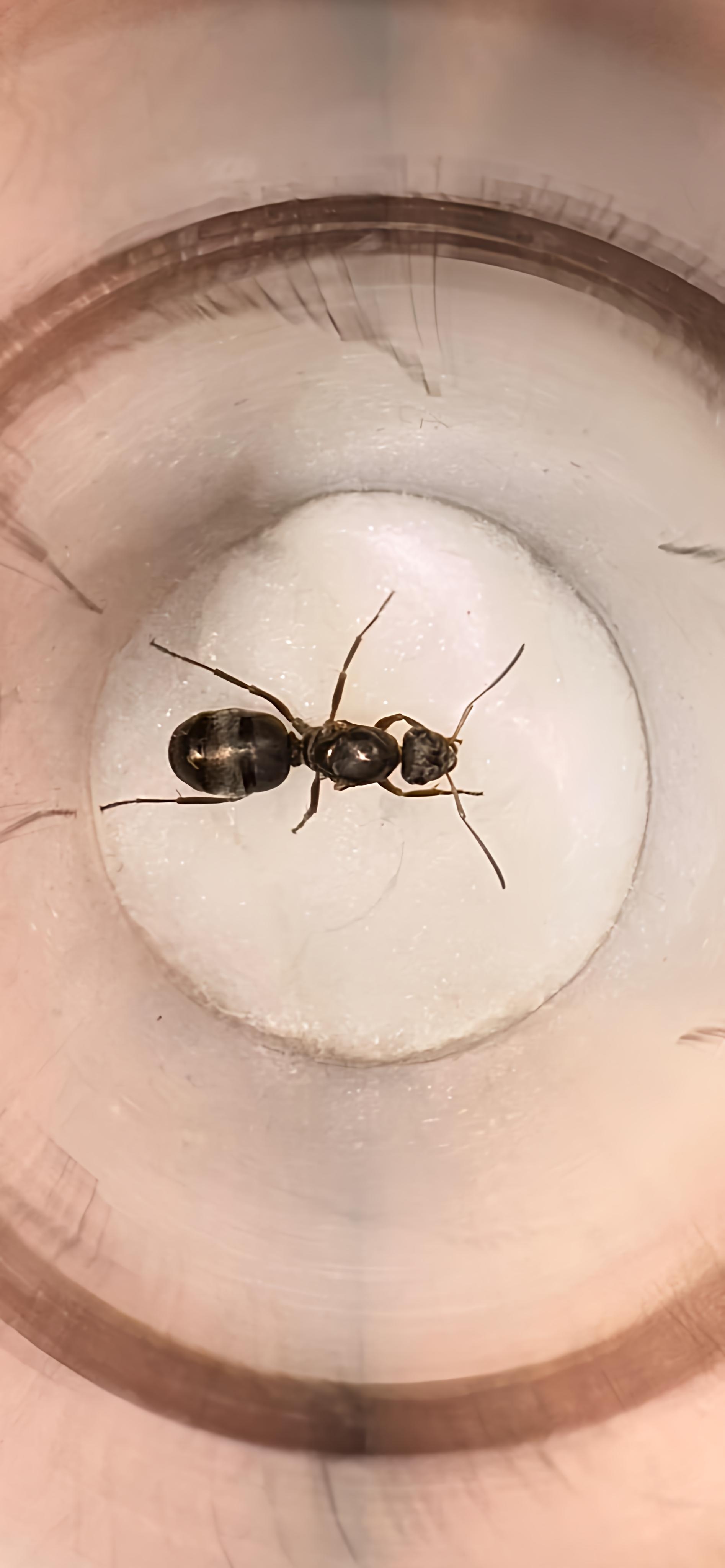 La provetta ha diametro 2cm e la formica sarà circa 9-10mm.