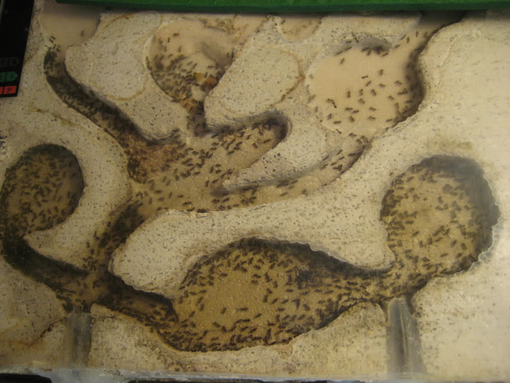 Salve a tutti dico subito che sono un neofita e da circa un mese ho una regina di Lasius niger con due operaie, la tengo in una provetta collegata ad un'altra provetta contenente la camera d'acqua e una o due camole della farina, insomma una mini camera di foraggiamento, ho dovuto fare così perché la provetta con cui mi e' arrivata la regina era senza camera d'acqua.