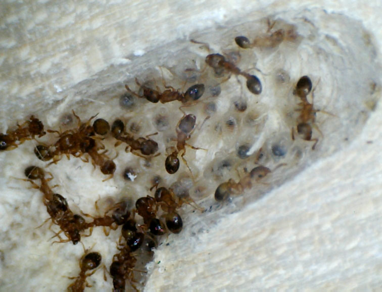 Bremen ha scritto:Noto che queste formiche sono molto calme, ma c'è sempre qualcuna di loro in giro, mangiano con piacere sia miele che proteine, non mi ero reso conto, forse per le loro dimensioni, della presenza di uova