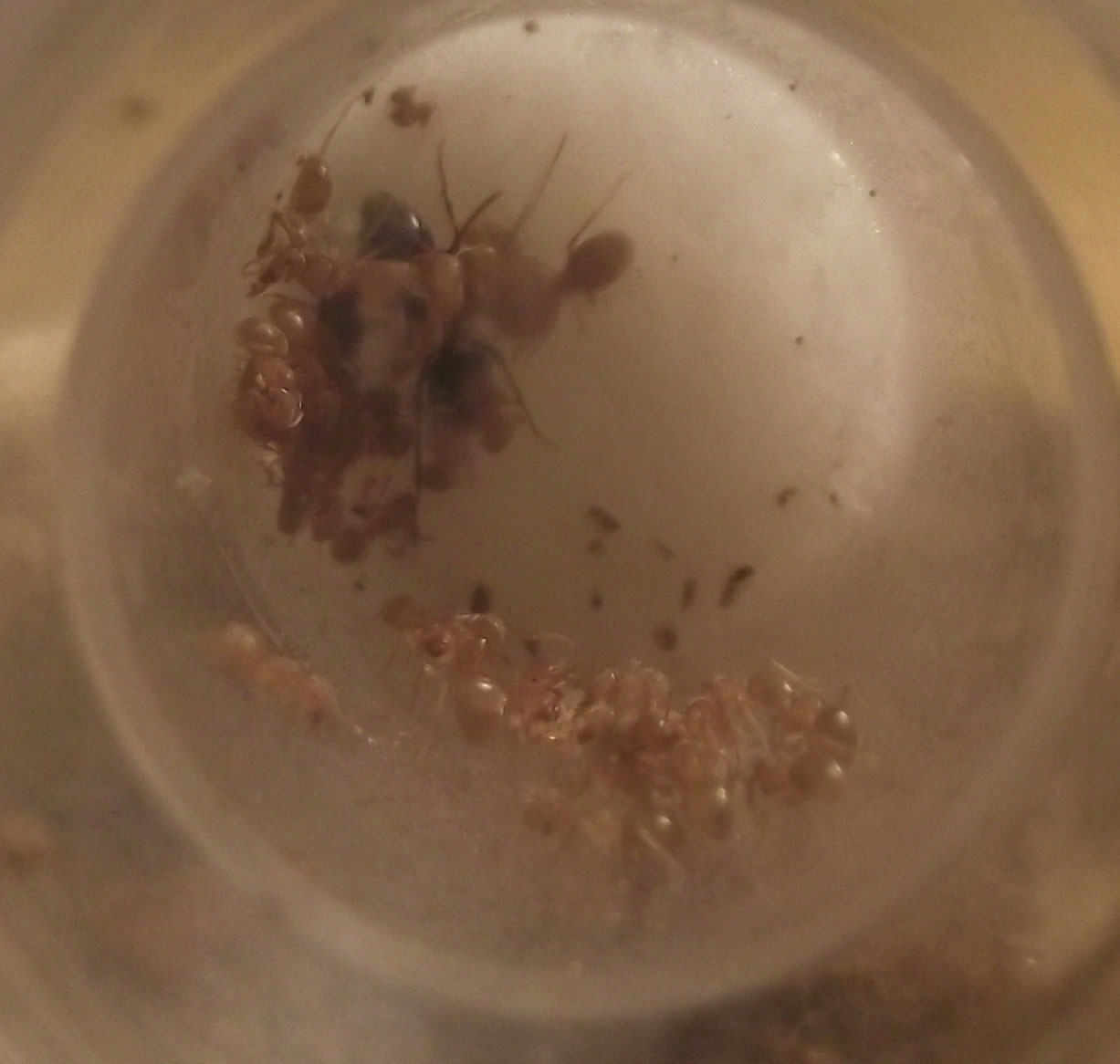 Bene, ho appena fornito alla regina un numero indefinito (20-30-40 non lo so) di operaie Lasius gialle...adesso sarà da capire se sono Cautolasius o Chthonolasius...speriamo di aver trovato quelle giuste...è stata l'unica colonia trovata durante il pomeriggio ( ho pure saltato il pranzo).