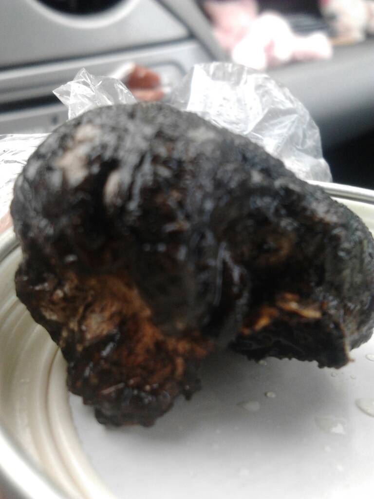 Questa ha un'apertura tipo sorriso, stretta e larga da un lato, completamente cavo e vuoto all'interno e fanno parte proprio del tronco della pianta, attaccate per un "picciolo" cortissimo quasi inesistente, e sono legnose... guardandole così assomigliano è vero un pò ai funghi poliporo