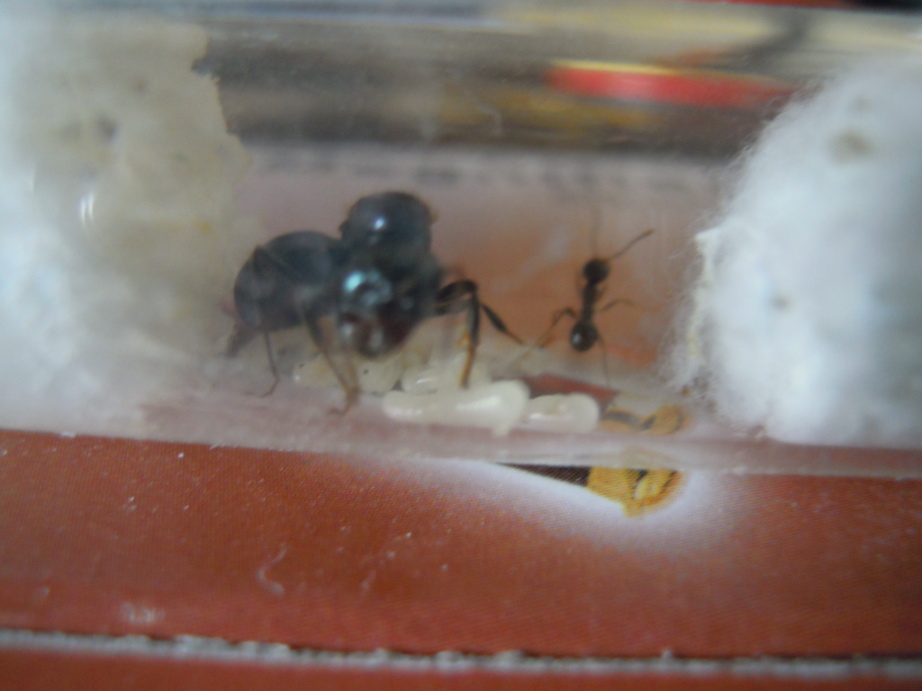 Non voglio demolire l'entusiasmo, ma dobbiamo ricordarci che la deposizione non è segno certo di fecondità. Anche regine infeconde possono deporre uova (sono aploidi in questo caso, cioè con singola copia dei cromosomi perché manca la copia dello spermatozoo e quindi del tutto simili alle uova da cui nascono maschi). In estate abbiamo raccolto molte regine di Messor non fecondate che hanno poi deposto. L'unica certezza la si ha nel vedere nascere operaie (quindi femmine). Comunque confidiamo tutti che queste regine portino a termine la loro missione