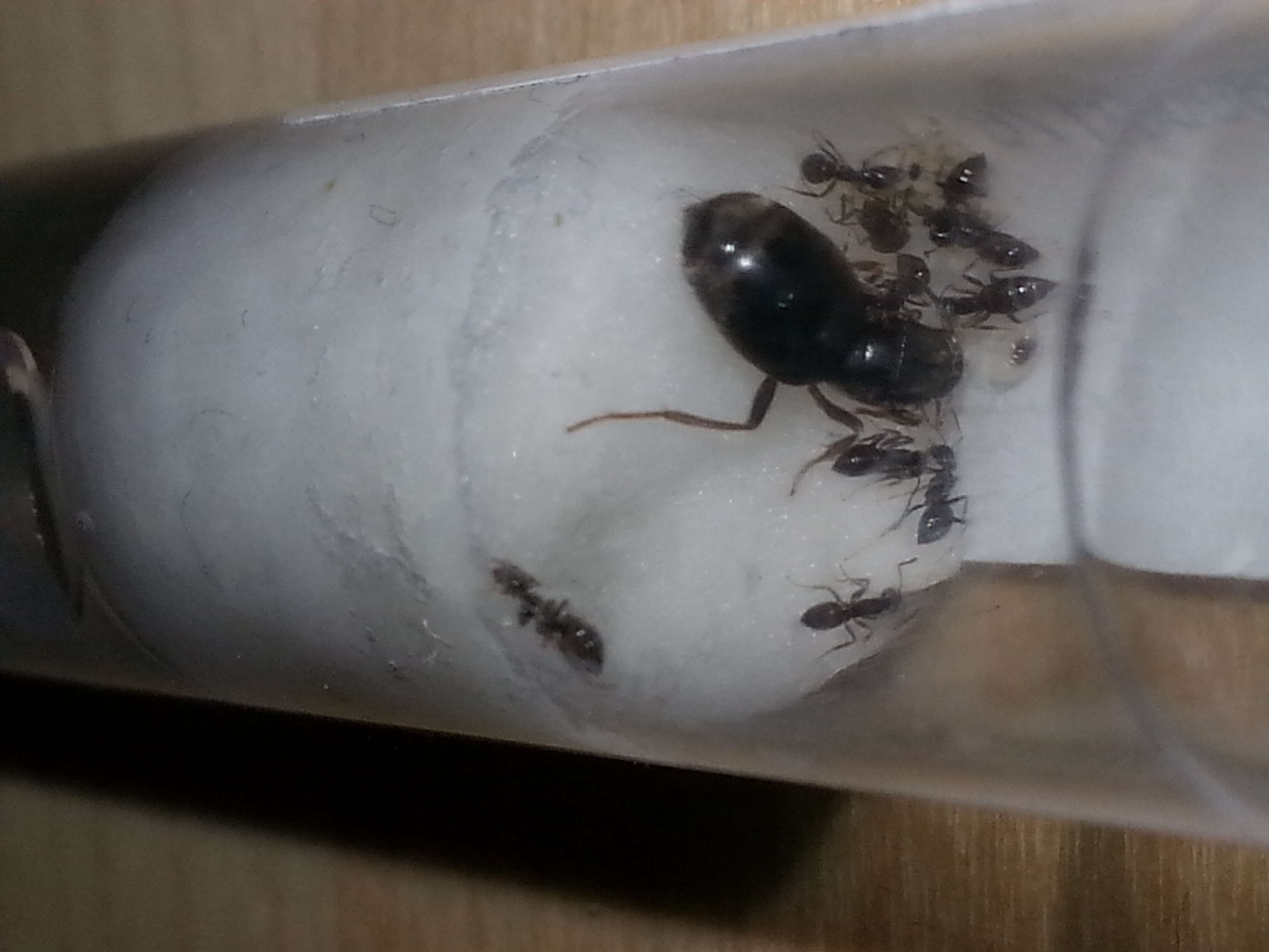 Si il cotone rimane un po' umido anche se l'acqua del serbatoio si esaurisce. In ogni caso le formiche rimangono sempre attaccate alla loro casa, quindi quando non le vedevi probabilmente andavano a prendere l'acqua nella nuova provetta nel caso fosse finita. Dico anche io che avresti potuto optare per uno scossone se non avesse avuto una grande covata. E poi le operaie sono timide di natura specialmente se sono le prime operaie. Inoltre mangiano pochissimo essendo quattro più la regina. Ciao